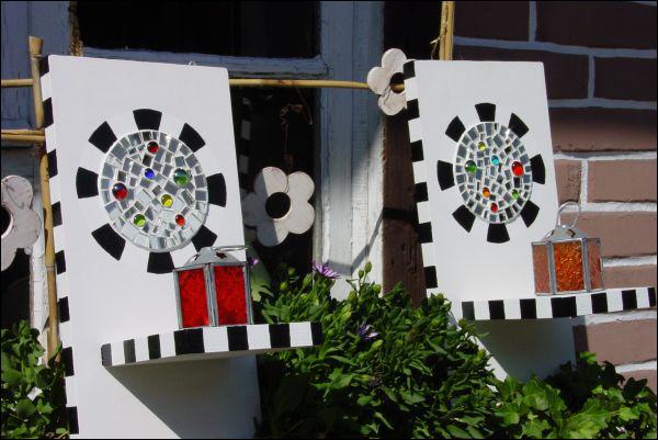 Aufhängung, Holz, Mosaik rund, handbemalt
